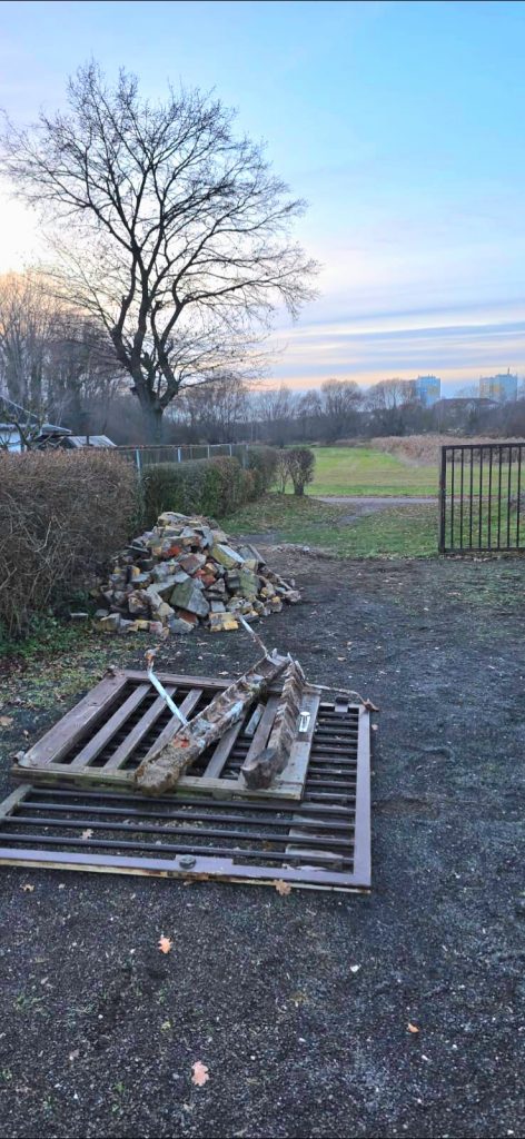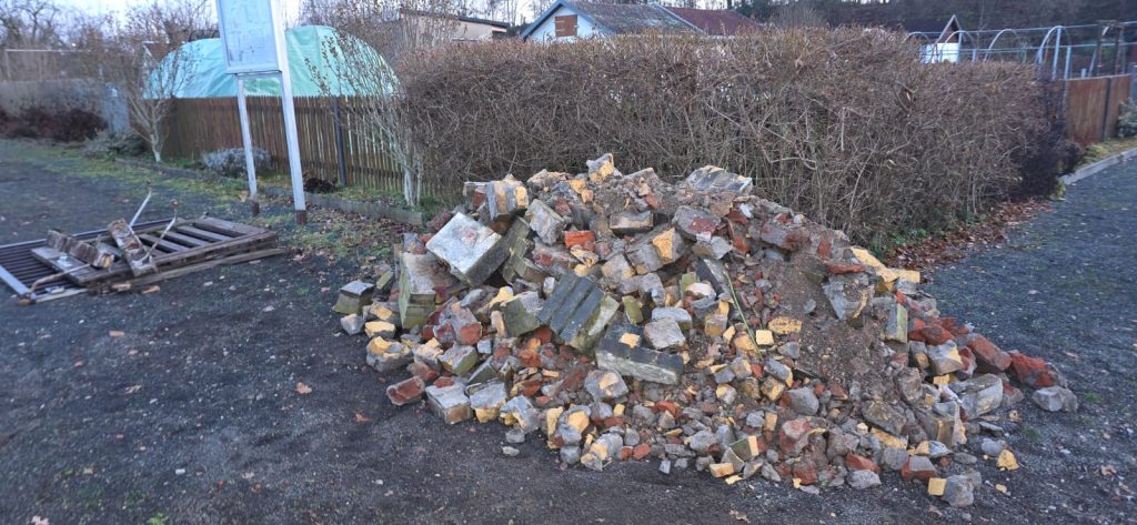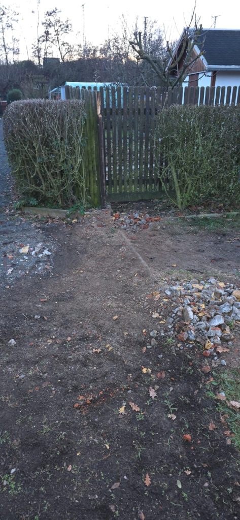 Es wurde bereits ein Seitenweg sowie ein Teil des Hauptweges von engagierten Helfern und Pächtern freigelegt, um die marode Wasserleitung vom Anschluss am Baggersee in Richtung Vereinshaus zu erneuern. Leider zeigte sich, dass diese an einigen Stellen stark verrostet war und dringend vor der Inbetriebnahme der Wasserversorgung im Frühjahr ersetzt werden musste, um eine zuverlässige Wasserversorgung im Verein sicherzustellen.