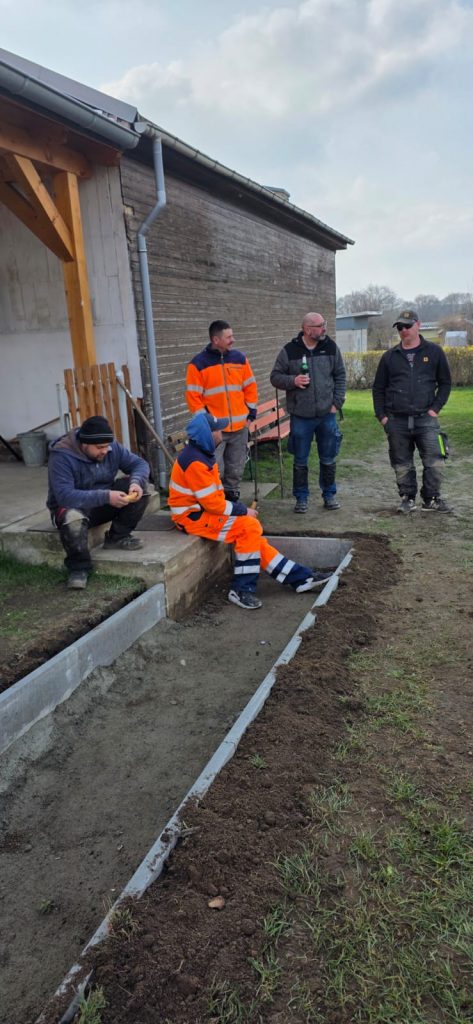 Am 21.03. und 22.03.2026 wurde wieder kräftig angepackt: Der neue Weg zu unserer Terrasse ist ein großes Stück vorangekommen. Dank des engagierten Einsatzes unserer fleißigen Helfer und unseres Bauobmanns entsteht Schritt für Schritt eine stabile und ansprechende Verbindung zur Terrasse.
