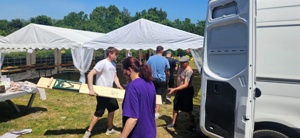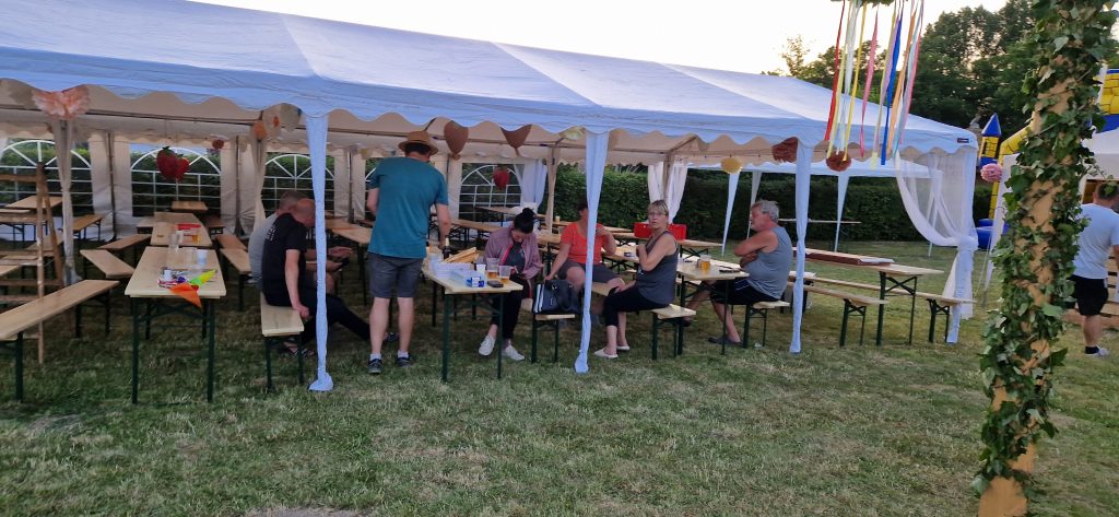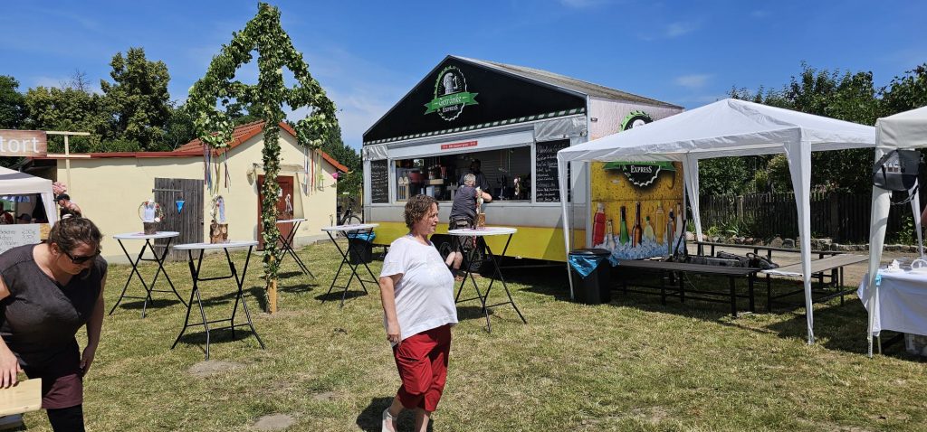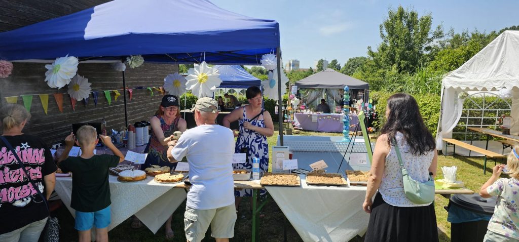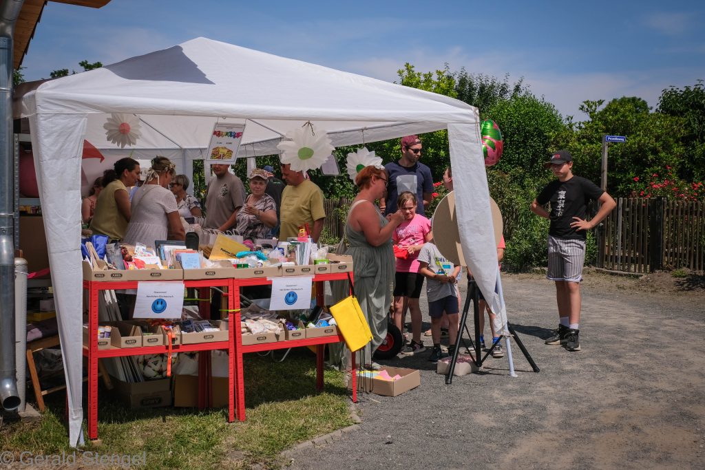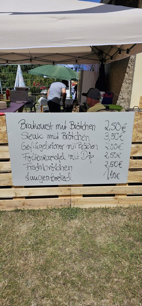 Für das leibliche Wohl war ebenfalls bestens gesorgt. Ein Grillstand bot köstliche Würstchen und andere Leckereien, während ein Getränkewagen für erfrischende Getränke sorgte. Auch der Kuchenbasar mit Kaffee und hausgemachten Kuchen war bei den Gästen sehr beliebt.