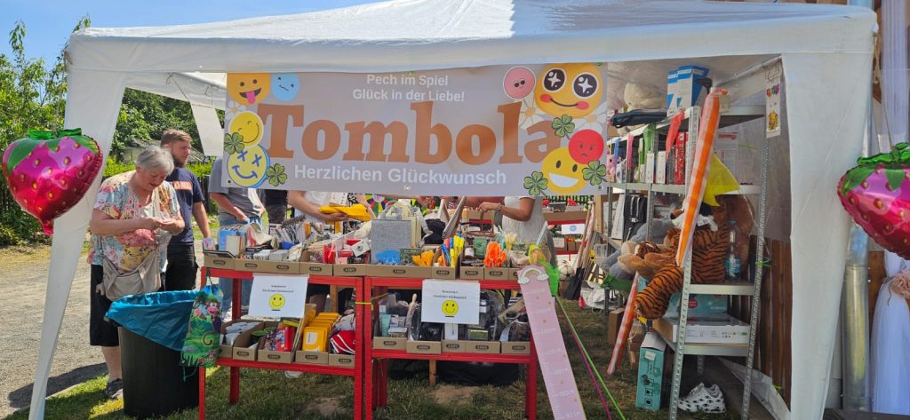 Unsere Vereins-Tombola und das Glücksrad, bei der es zahlreiche attraktive Preise zu gewinnen gab, brachte zusätzlich Spaß und Spannung.