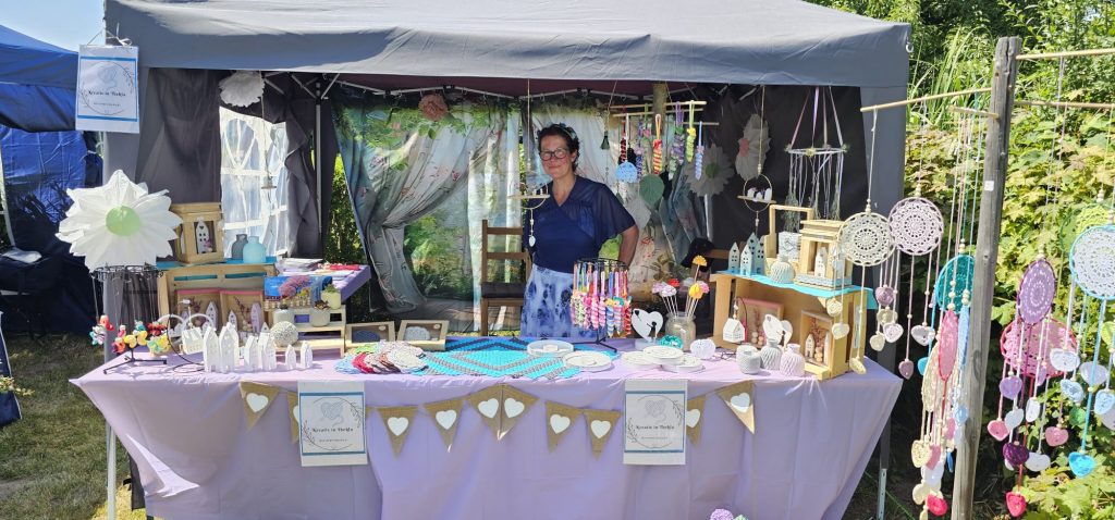Die Gäste konnten außerdem an liebevoll gestalteten Handmade-Ständen stöbern, wo kreative Handwerkskunst angeboten wurde. Eine Pächterin hatte sogar einen eigenen Stand betrieben. Dadurch hatten die Besucher die schöne Gelegenheit besondere Handwerkskunst zu entdecken.