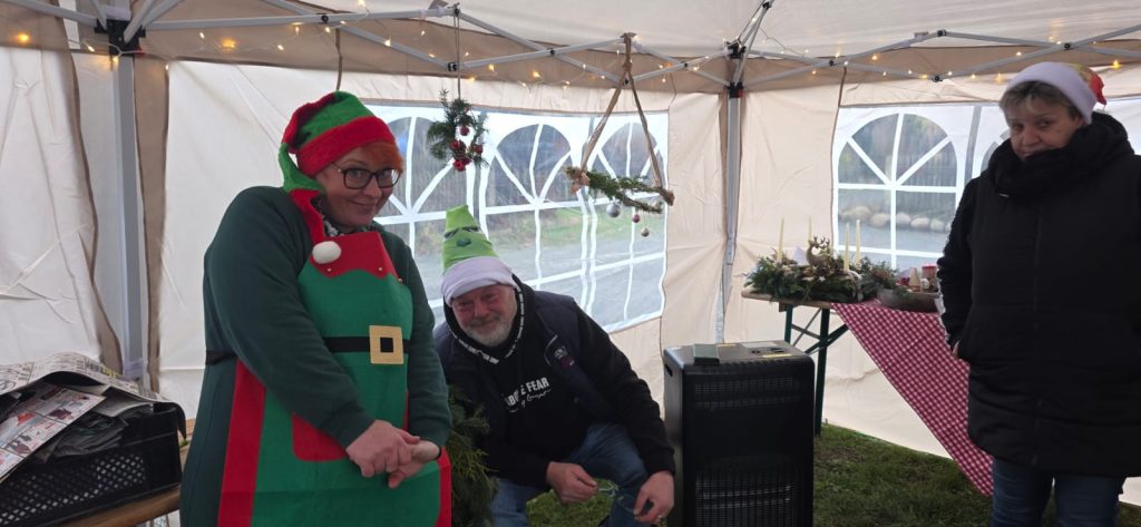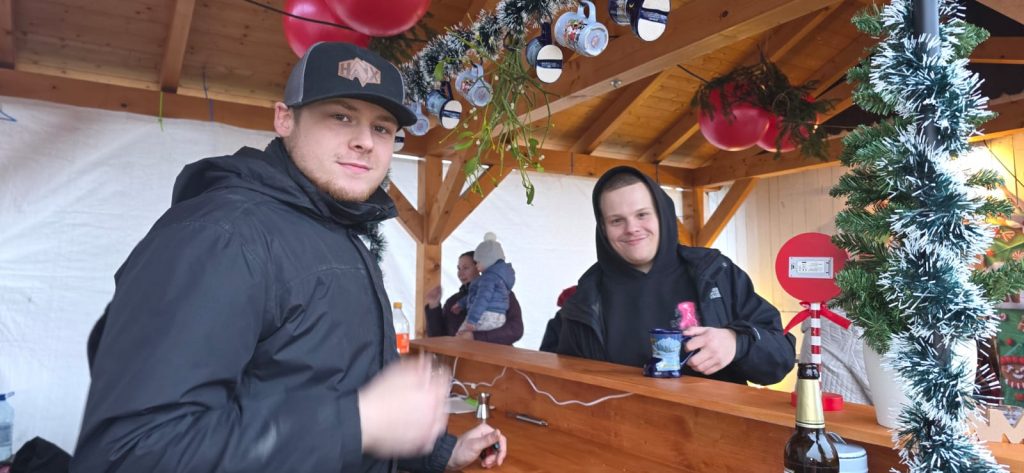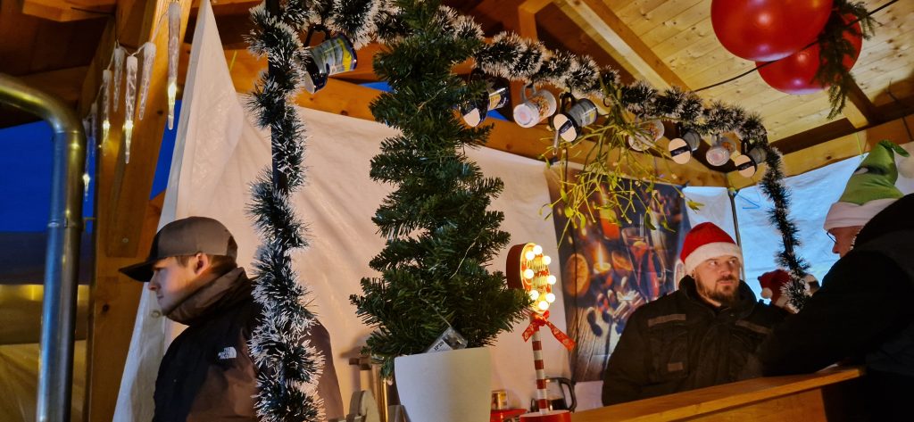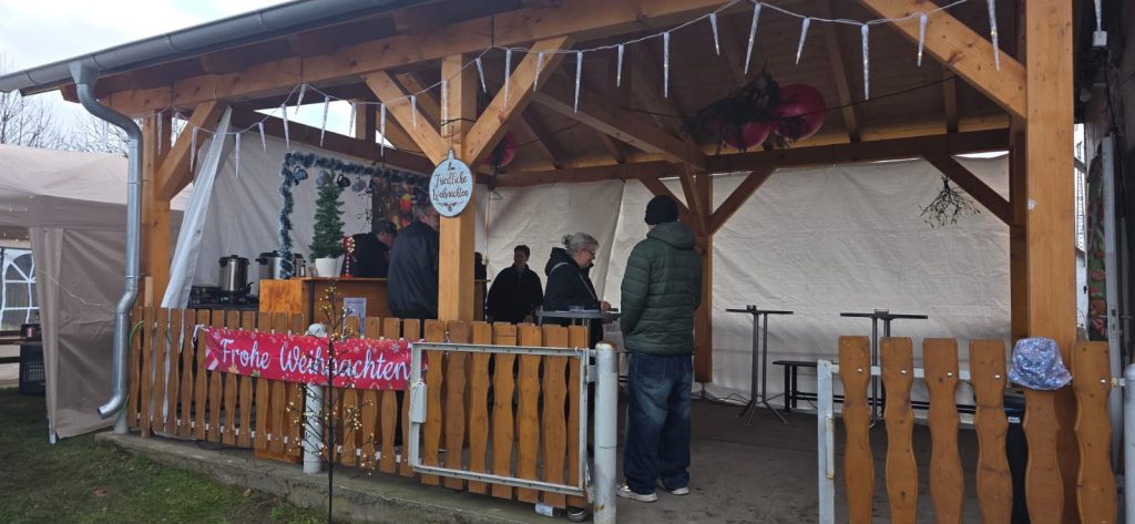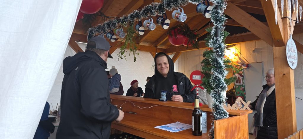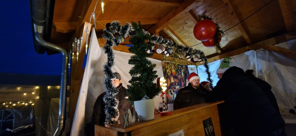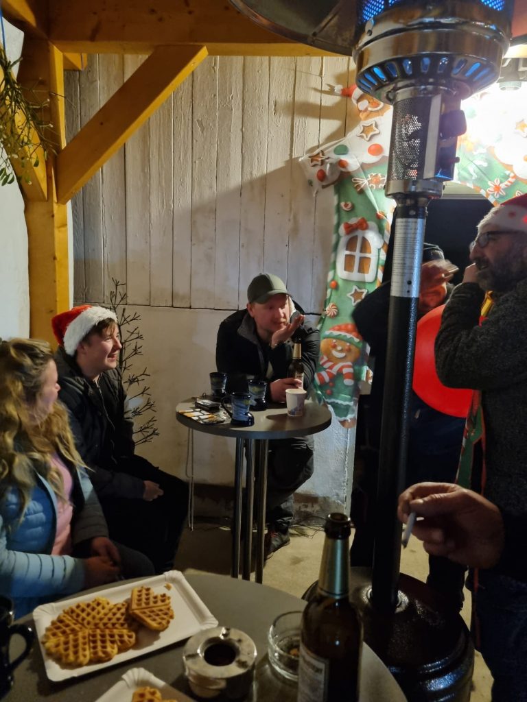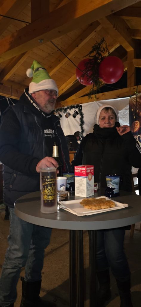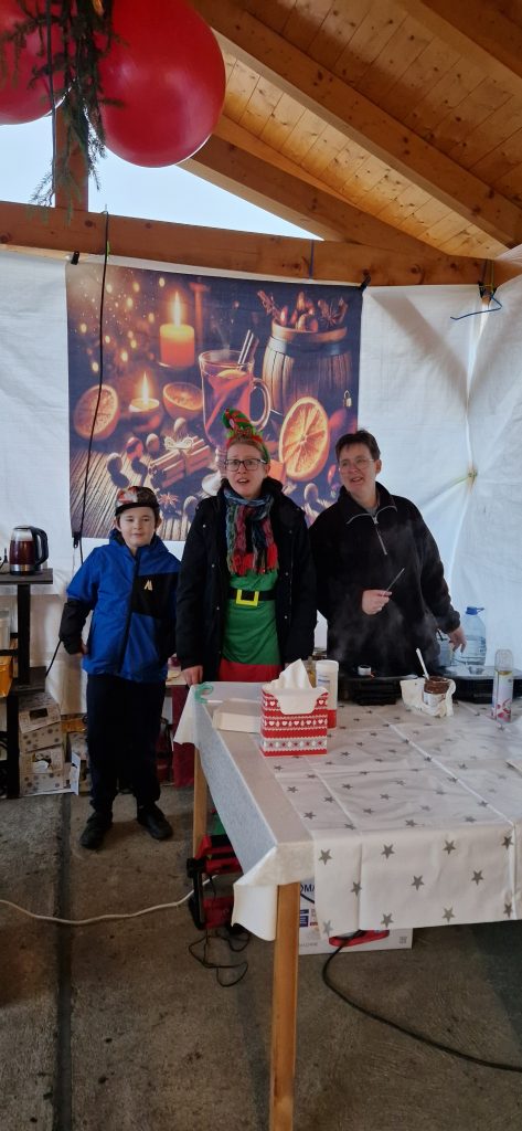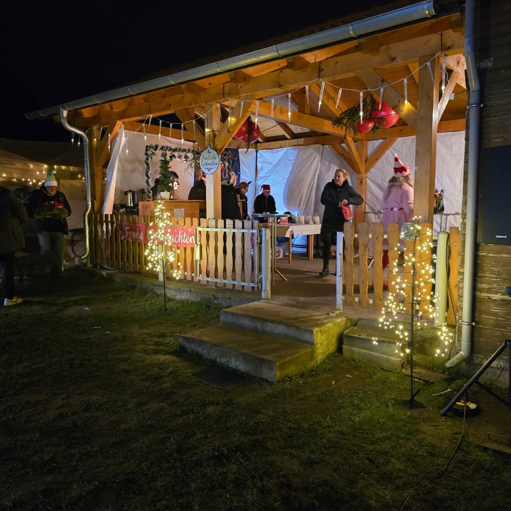 Auch unser Getränkestand war gut besucht und bot Glühwein, Glühpunsch und Bier an. Am Nasch-Stand gab es frische Waffeln und Schokoäpfel, während am Grillstand leckere Bratwurst serviert wurde. Viele Gäste ließen den Nachmittag gemütlich an den Tischen rund um den leuchtenden Weihnachtsbaum oder im warmen Zelt ausklingen.