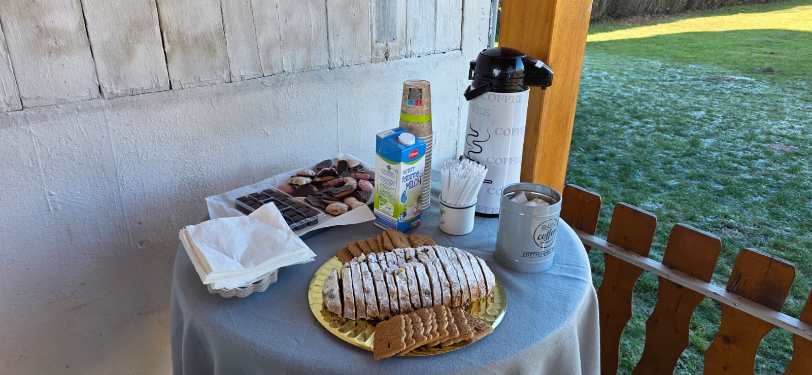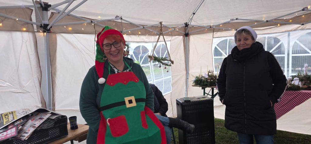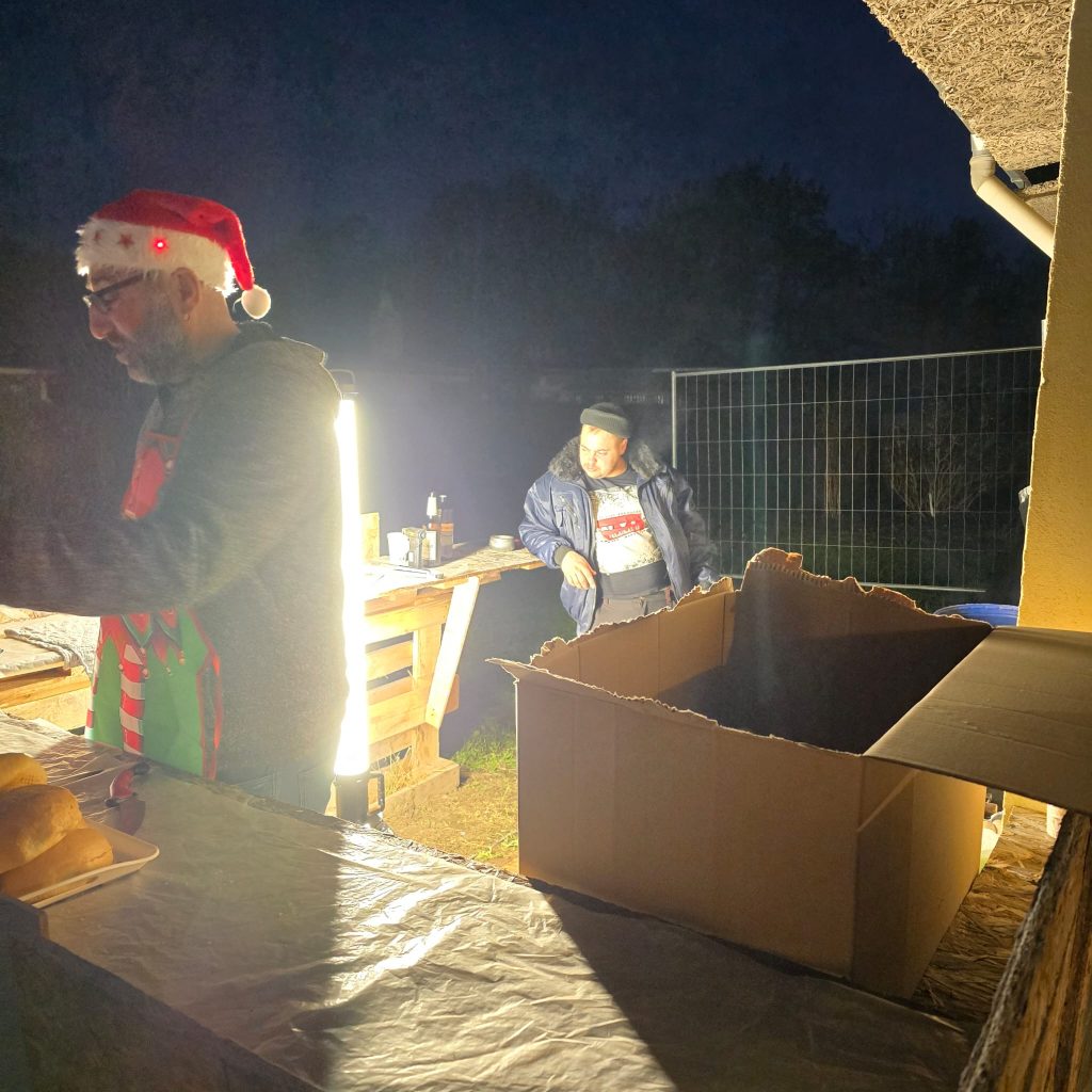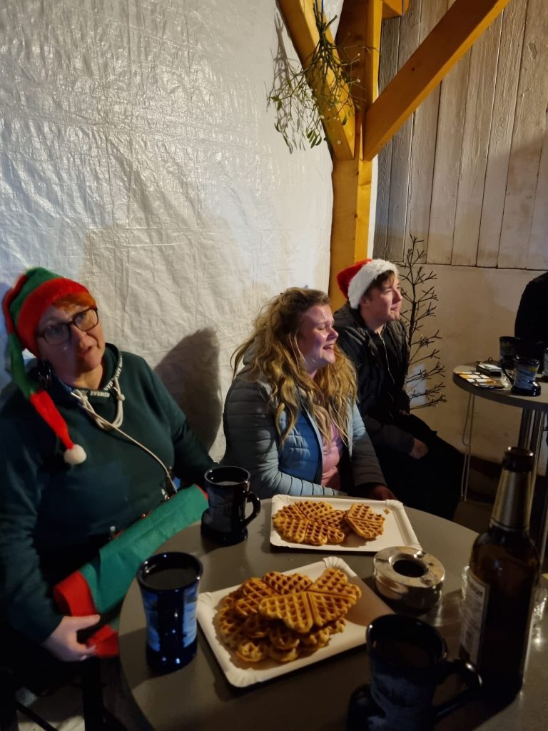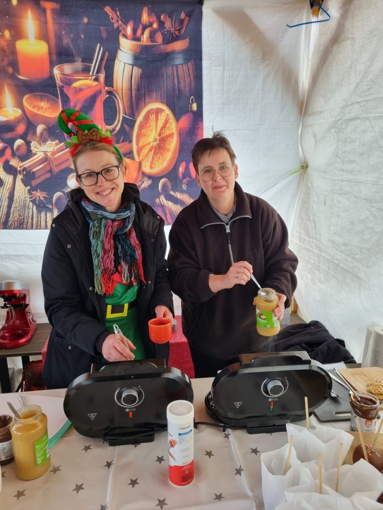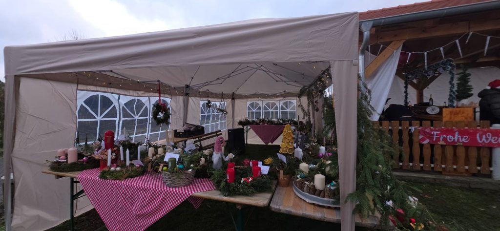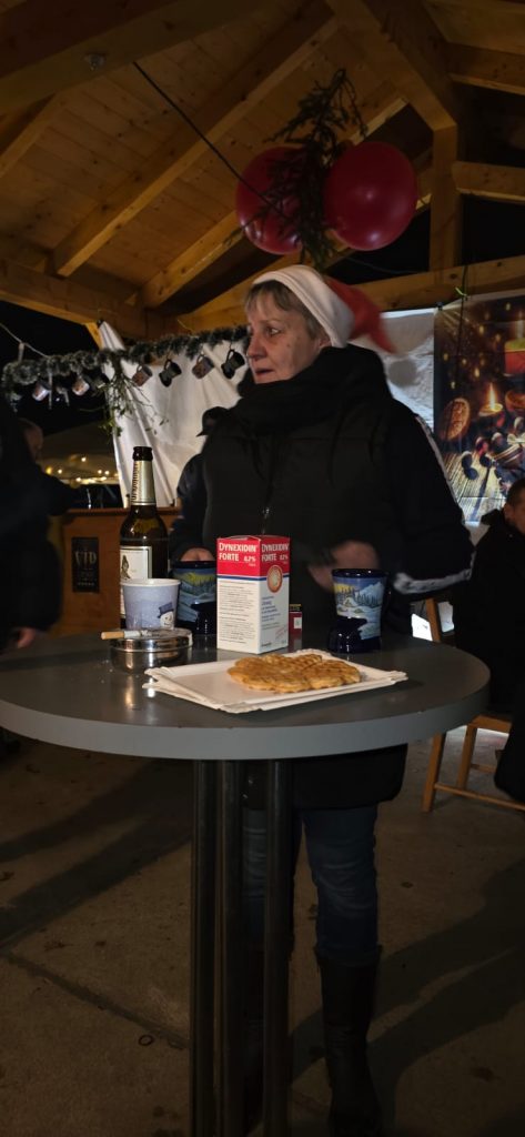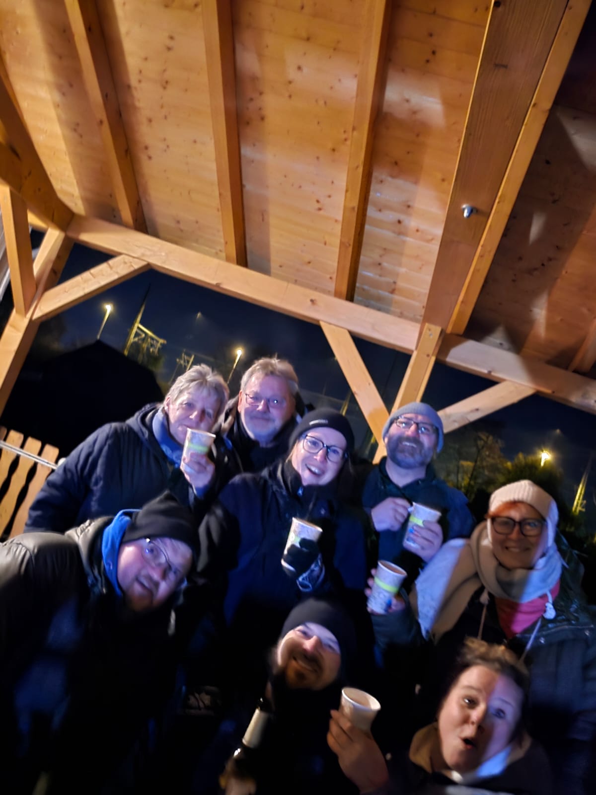 Auch unser Getränkestand war gut besucht und bot Glühwein, Glühpunsch und Bier an. Am Nasch-Stand gab es frische Waffeln und Schokoäpfel, während am Grillstand leckere Bratwurst serviert wurde. Viele Gäste ließen den Nachmittag gemütlich an den Tischen rund um den leuchtenden Weihnachtsbaum oder im warmen Zelt ausklingen.