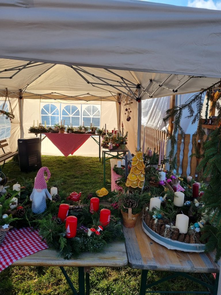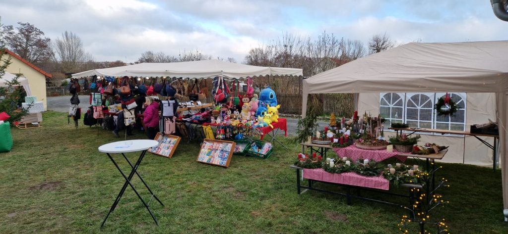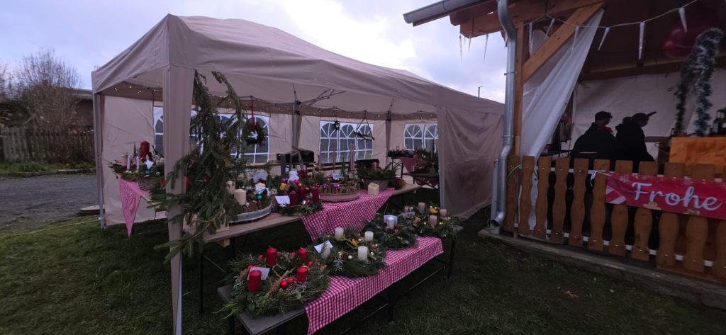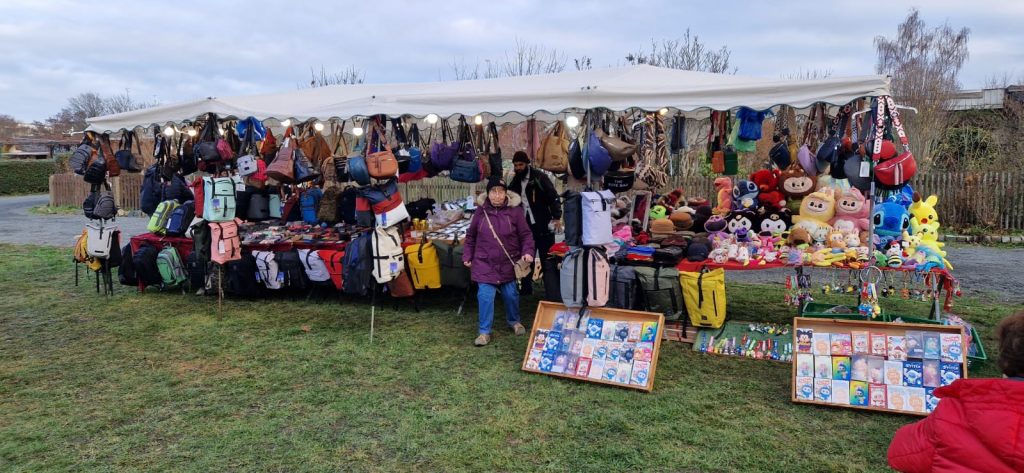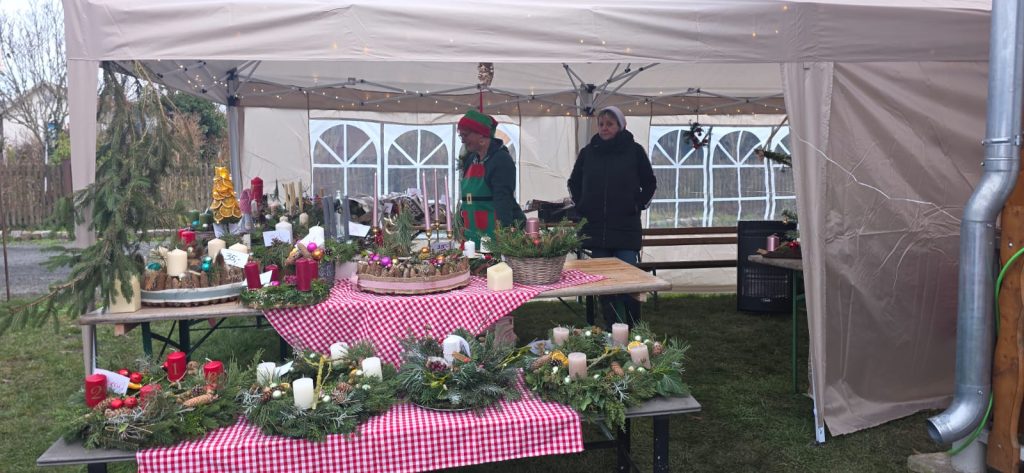 Für weihnachtliche Stimmung sorgten unsere vielfältigen Stände. Am Adventsgestecke-Stand fanden die vielen dekorative Handarbeiten vom Bastelnachmittag neue Besitzer. Einen besonderen Dank möchten wir an Abdul richten, der mit seinem vielfältigen Verkaufsstand – gefüllt mit wunderschönen Taschen, Mützen, Kinderspielzeug und vielem mehr – eine große Bereicherung für unser Fest war.
